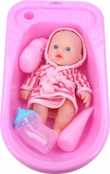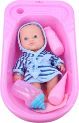 Ovaj sjajan set za kupanje s preslatkom lutkom savršen je za djecu koja vole brinuti o svojim igračkama. Set sadrži sve potrebno za kupanje lutke: