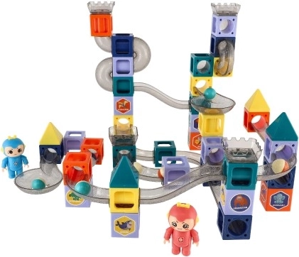 Raznoliki blokovi, rampe i dodaci omogućuju slaganje uvijek novih staza za kuglice. Djeca tako na zabavan način otkrivaju principe gravitacije i brzine.