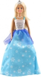 Lutka ima prekrasnu plavu haljinu s detaljima pahuljica, koja daje bajkovit izgled.
