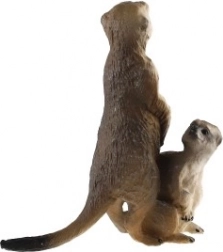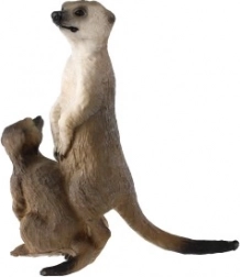 Ova precizno izrađena figurica prikazuje odraslu surikatu na oprezu i mladunče uz njezinu stranu. Vjerna tekstura krzna i prirodne boje daju modelu realističan izgled, zahvaljujući čemu je izvrsna za dječje igre, školske projekte i kao stilska dekoracija.