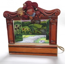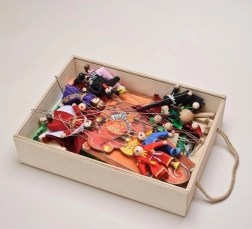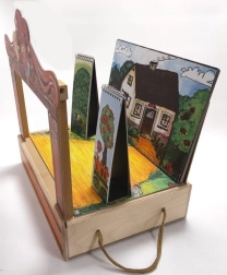 U pakiranju ćete naći 14 drvenih lutaka, 11 kolornih scena, proscenij, zastor i bočne kulise – sve pregledno pohranjeno u drvenoj kutiji s ručkom.