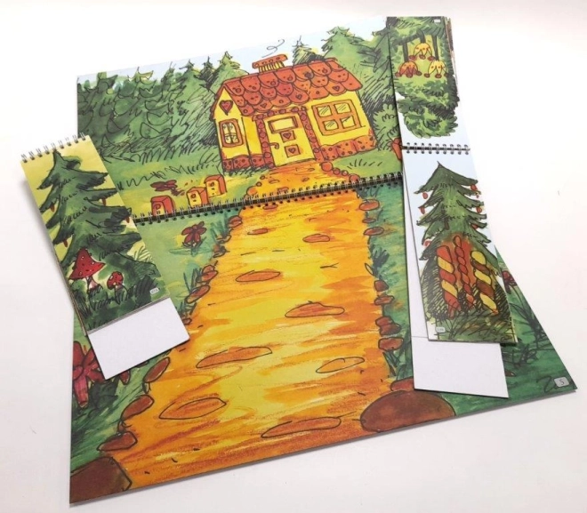 Dio kompleta je 11 obostranih ili uparenih scena na spiralnoj vezici s podnicom: u dvorcu / ispred dvorca, ispred kućice / u kućici, medena kućica / u medenoj kućici, u šumi / kod špilje, u paklu / kod ribnjaka, u ribnjaku. Lutke uključuju kraljevsku obitelj, junake i bajkovita bića – idealno za klasične priče.