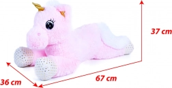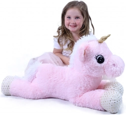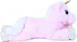 Pažljivo izrađeni detalji, poput zlatnog roga, točkastih kopita i mekane grive i repa, naglašavaju njegov bajkovit izgled. Veliki format od 70 cm nudi dovoljno prostora za zagrljaje i djeci pruža osjećaj sigurnosti i mira tijekom odmora.