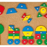 Kreativna i zabavna Lena udarajuća igra za djecu nudi beskrajne mogućnosti stvaranja oblika. Sadrži 72 šarena dijela, čekić, čavle i plutenu ploču.