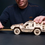 Očarat će vas spoj dizajna i mehanike: model oklopnog vozila UGEARS Dozor‑B donosi realistične detalje uključujući otvoriva vrata, gornji i stražnji poklopac te detaljno izrađenu unutrašnjost s klupama i sigurnosnim pojasima. Sprijeda se nalazi radno vitlo za samoizvlačenje, dok se opružni motor, pogon na sve kotače i potpuno ovjesenje brinu za glatku vožnju do otprilike 8 metara.