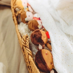 Lutka je izrađena od baršunastih tkanina koje su nježne prema dječjoj koži i zadovoljava europske sigurnosne norme CE. Praktično održavanje olakšava svakodnevnu upotrebu – lutku je moguće prati na 30 °C i sušiti prirodno ili na niskoj temperaturi. Isporučuje se u lijepoj poklon-kutiji, što je čini sjajnim prijedlogom za poklon za rođenje ili krštenje.