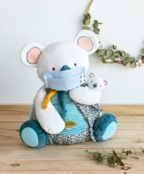 Ova mekana koala Yoca postat će prvi mazni prijatelj vaše bebe. Velika koala nježno drži malo mladunče i nudi skriveni džep u koji lako možete spremiti pidžamu ili sitnice za spavanje. Igračka je dizajnirana za udobnost i sigurnost najmlađih.