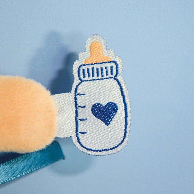 Mekana mini lutkica Doudou Jolijou 18 cm u plavoj. Nježni materijali, vezene pojedinosti, bočica u ruci, pranje na 30 °C, prikladno od rođenja, ispunjava CE.