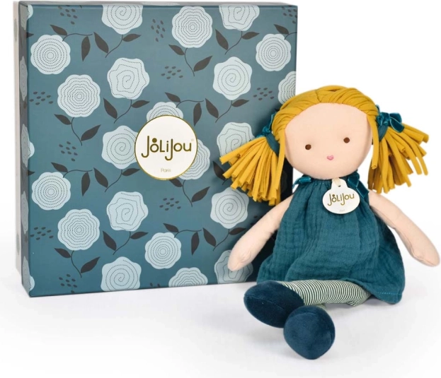 Mekana lutkica Doudou Jolijou Jade 30 cm za djecu od rođenja. Vezeno lice, boho stil, poklon-kutija, pranje na 30 °C, CE certifikacija.