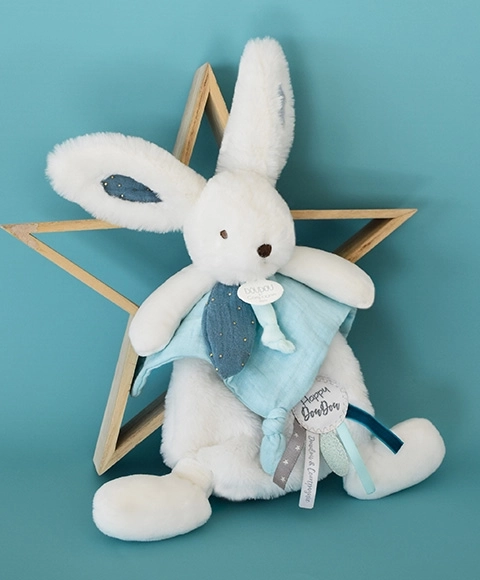Slatki plišani zeko s tješilom u elegantnoj plavoj boji idealan je prvi prijatelj za bebe. Isporučuje se u prekrasnoj poklon-kutiji, pa je savršen kao dar. Igračka je izrađena od mekanog vrhunskog pliša, udovoljava europskim CE normama i prikladna je od rođenja. Održavanje je jednostavno – pranje na 30 °C i nježno sušenje.