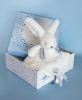 Ovaj plišani zečić lijepo je stiliziran i ukrašen pažljivo usklađenim vrpcama, što mu daje dozu modernosti i luksuza. Predstavljen u prekrasnoj poklon kutiji, idealan je dar za novorođenče.