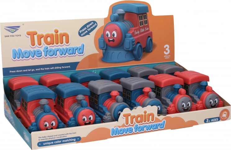 Ova dječja lokomotiva veličine 11 cm je zabavna igračka dostupna u tri boje - siva, plava i crvena. Idealna za male ljubitelje željeznica.