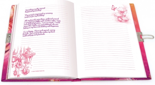 - Dnevnik nudi 200 stranica, uključujući 44 stranice pune aktivnosti i Petuliine kompletne priče.