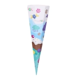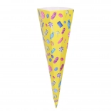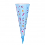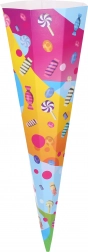 Univerzalan kornet za djecu i odrasle – sjajan za prvi dan škole, kao poklon pakiranje slatkiša za Nikolinje, rođendane ili imendane. Zahvaljujući duljini od 50 cm stane u njega puno poslastica i sitnih iznenađenja.