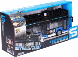 Dvoetažni turistički autobus s efektima donosi djeci puno zabave i realističnih detalja. Zahvaljujući inercijskom pogonu lako se pokreće, svjetlosne i zvučne efekte aktivirate praktično tipkama na krovu, a otvarajuća vrata daju igri autentičnost.