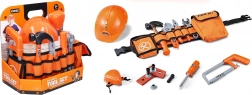 Praktičan dječji set za male majstore sadrži sve potrebno za sigurno igranje i prve “uradi sam” pokušaje. Dio seta je tekstilni pojas za udobno nošenje alata, kaciga i bogata oprema: maska, pila, čekić, kliješta kombinirke, francuski ključ, odvijač, ključ, 2 drvenice, 3 vijka i 3 matice.