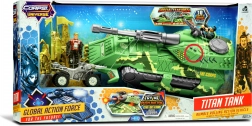 Otkrijte akcijski set The Corps tenk Titan s vojnicima koji nudi autentičan doživljaj borbenih scena. Veliki tenk duljine 39 cm ima izražene detalje i funkcije koje će djecu odmah uvući u igru. Zahvaljujući svjetlosnim i zvučnim efektima s 10 različitih zvukova svaka će misija biti dinamična i napeta.