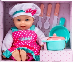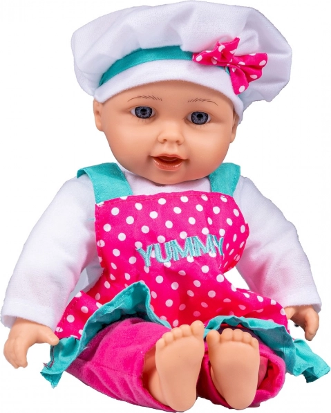 Lutka kuharica Julka donosi ne samo radost kuhanja, već i uči djecu osnovama zdrave prehrane. Pritiskom na gumbić na trbuščiću lutka: