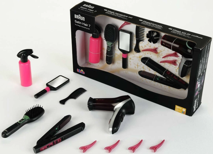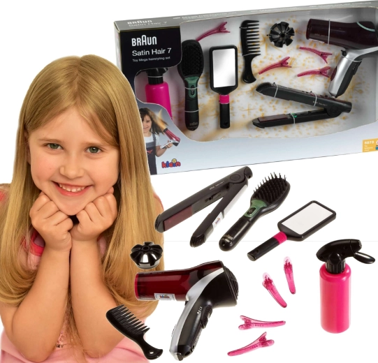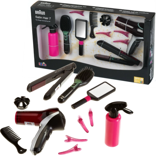 Veliki frizerski set inspiriran linijom BRAUN Satin Hair nudi djeci sve što trebaju za stilizirane frizure. Igračke su osmišljene s naglaskom na sigurnost i oponašaju stvarne alate – sušilo, pegla i četka rade na baterije i stvaraju realistične svjetlosne i zvučne efekte, dok toplinu ni strujanje zraka ne proizvode.