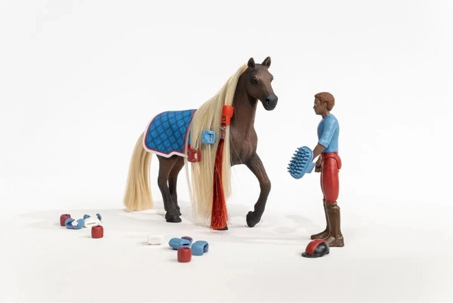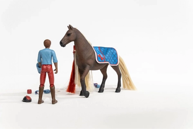 Figurica jahača s pokretnim udovima, sedlo s mekom dekicom i uzda omogućuju prirodno sjedenje u sedlu i autentične jahačke scene.