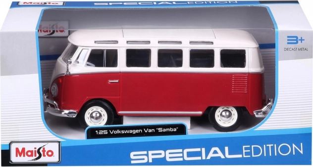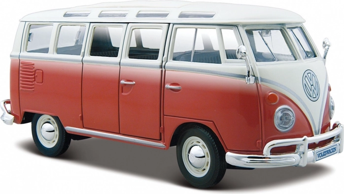 Otkrijte ikonični mikrobus u obliku kvalitetnog metalnog modela u elegantnoj bijelo-crvenoj kombinaciji. Zahvaljujući detaljnoj izradi i pokretnim dijelovima uživat ćete u realističnom doživljaju – od otvaranja vrata do poklopca motora. Model u mjerilu 1:25 idealan je za izlaganje i igru.
