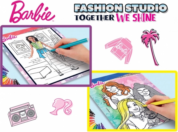 S kreativnom knjižicom za dizajn Barbie svaka djevojčica postaje dizajnerica vrhunske mode! Ovaj set sadrži: