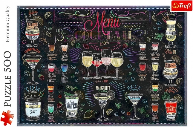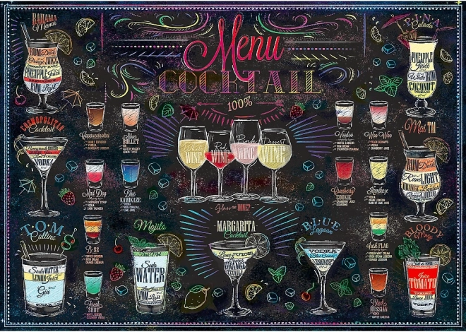 Uživajte u relaksaciji uz slaganje dizajnerskog motiva jelovnika koktela. Zahvaljujući 500 dijelova, puzzle su idealne za početnike i napredne koji traže kombinaciju elegantnog motiva i ugodnog izazova. Posebna površina smanjuje odsjaj, pa boje bolje dolaze do izražaja, a pojedini dijelovi se lakše razlikuju.