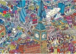 TREFL UFT (Unlimited Fit Technology) donosi revoluciju u svijet puzzli. Posebna tehnologija štancanja omogućuje spajanje više motiva iz iste serije, tako da sami određujete veličinu i izgled završnog kolaža. Razrađeni motiv „Eye-Spy Time Travel: London“ oduševit će svakog ljubitelja Britanije i detaljnog slaganja.