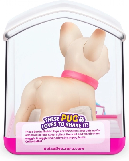 Vrijeme je da pronađeš nove preslatke džepne prijatelje! U kolekciji su 4 Booty Shakin' štenca: dražesni korgi, hrabri jazavčar, plesni mopsić i neustrašivi francuski buldog – kojeg ćeš odabrati? Uključi štene i gledaj kako hoda, trese guzu i maše repom. Svako štene ima svoj vlastiti odvojivi sjajni ovratnik i preslatke naljepnice. Isporučuju se u jedinstvenom pakiranju koje ujedno služi kao kućica. Dovedi svog omiljenog ljubimca kući već danas!