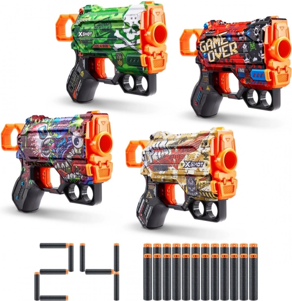 X-SHOT Skins donosi svijet gamerske personalizacije u stvarnost. Ovaj povoljan Menace 4 Pack nudi četiri kompaktna blastera u jedinstvenim dizajnima s kojima ćete zasjati u svakoj bitci. Zahvaljujući laganoj konstrukciji, sigurnom prianjanju i brzom punjenju idealni su za djecu i za razigrane dvoboje s prijateljima.