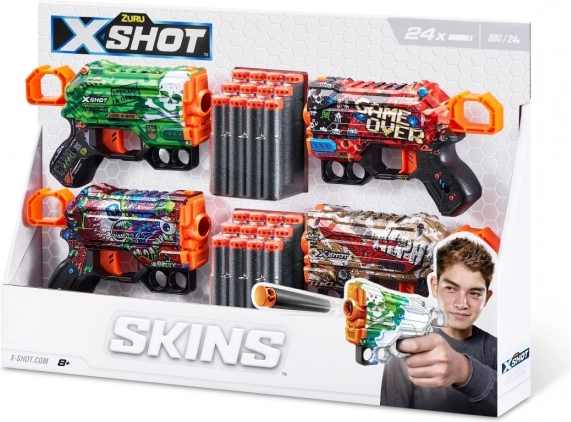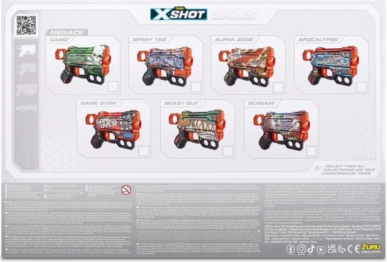 Izbrusite svoj stil na bojištu zahvaljujući X-SHOT SKINS tehnologiji tiska. U setu se nalaze dizajni Camo, Game Over, Scream te dodatno ekskluzivni skin Alpha Zone.