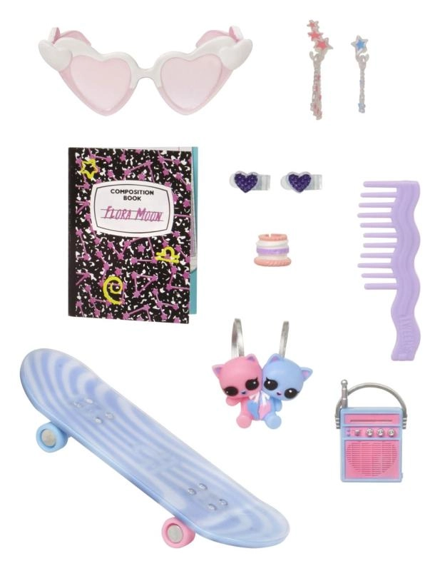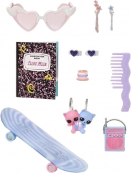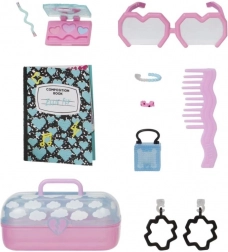 Set sadrži mini fotoaparat, bilježnicu, češalj i druge sjajne sitnice. Dodaci potiču pripovjednu igru, oblikovanje frizura i modne transformacije.