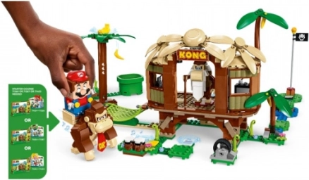 Otkrijte kultno okruženje džungle s DONKEY KONGOM i uživajte u zabavi punoj prijateljstva i nagrada. Kućica na drvetu prepuna je detalja: TV i radio za sastavljanje, tajno skrovište, viseća mreža, bubnjevi i banana palma. Zahvaljujući kompatibilnosti s interaktivnim figuricama LEGO Super Mario (nisu uključene) dobivate igraće izazove i skupljanje digitalnih novčića.