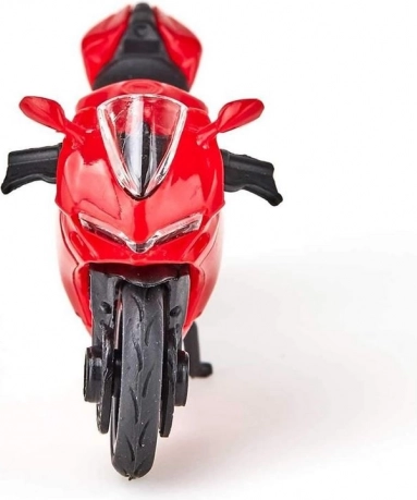 Ikonični motocikl Ducati Panigale 1299 u preciznoj izvedbi modela od SIKU-a razveselit će svakog ljubitelja brzih strojeva. Metalno tijelo od tlačno lijevanog cinka, detaljna izrada, upravljačko prednje kolo i sklopivi postolje – sve to u karakterističnoj crvenoj boji.