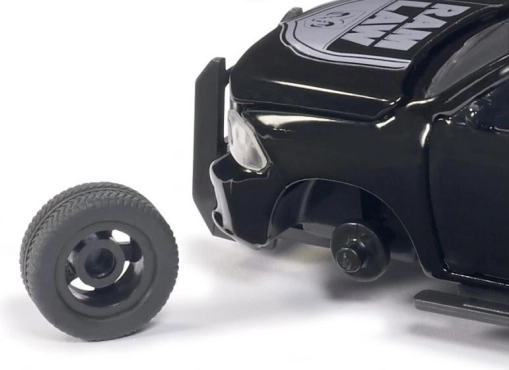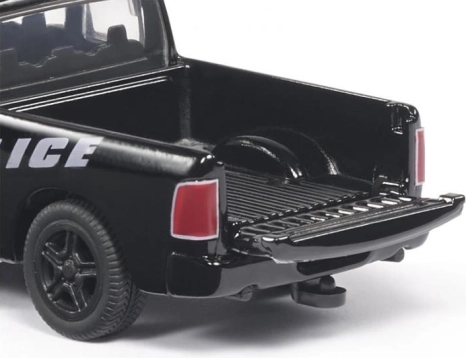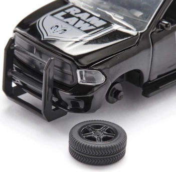 RAM! Svjetski poznat simbol snažnog i učinkovitog pick-upa s osmerocilindričnim srcem. Model u mjerilu 1:50 prikazuje stvarnu veličinu i funkcionalnost ovog pickupa. Otvorivi poklopac motora, vrata i stražnja vrata. Najnovija SIKU inovacija krije se u kotačima koji se po prvi put mogu izvaditi, tako da se vaše dijete može igrati popravka vozila. Policijsku verziju krase tipična rotirajuća signalna svjetla i karakteristični otisci.