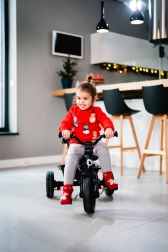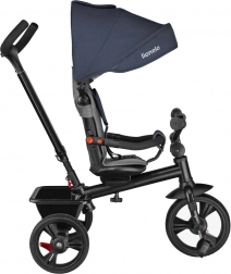 Tricikla LIONELO Haari Jeans praktična je alternativa sportskim kolicima – iz režima s punom opremom za najmlađe postupno prelazi u samostalni bicikl na pedale za malog vozača. Okretno sjedalo 360° omogućuje vožnju licem prema roditelju ili u smjeru kretanja, dok čelični okvir i promišljena modularna konstrukcija osiguravaju dug vijek i lako prilagođavanje.