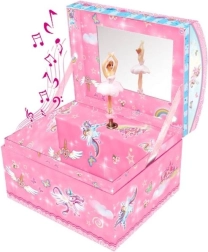 Glazbena kutija s motivom jednoroga je idealan poklon za ljubitelje bajki. Otvaranjem kutije počinje svirati klasična melodija i figurica jednoroga počinje se okretati.