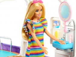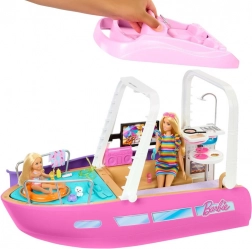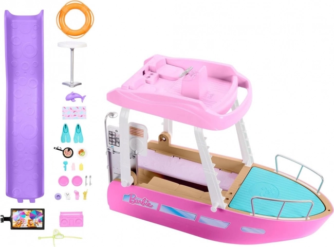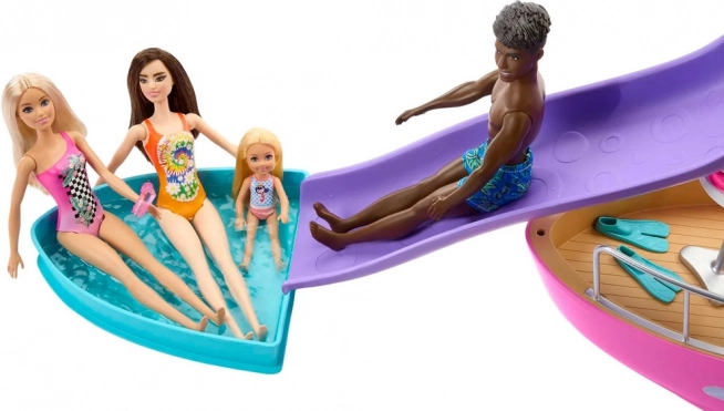 Ovaj stilski brod dimenzija približno 91 cm širine i 30 cm visine nudi mnogo mjesta za lutke i njihove prijatelje. Djeca mogu upravljati brodom na gornjoj palubi, opuštati se na suncu i spuštati se niz ljubičasti tobogan ravno u plavi bazenčić. Odvojivi gornji kat otkriva detaljno izrađen interijer za jednostavno igranje.