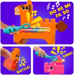 Otkrijte čaroliju slaganja s kockama Mega Bloks koje potiču osjetilni razvoj djece. Ovaj predškolski komplet za slaganje sadrži 45 velikih kocaka prikladnih za djecu u dobi 1–3 godine. Životinjice poput konjića, kravice ili pilića, svaka nudi vlastiti glazbeni element, poput ksilofona, bubnja ili zvečke. Djeca će se ne samo zabaviti, već će naučiti odsvirati do 6 pjesmica, što razvija njihove motoričke i kognitivne vještine.