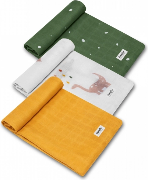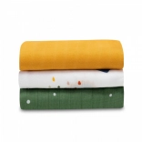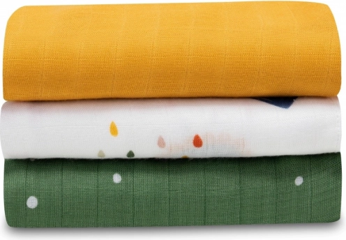 Tri pelene dimenzija 70 × 70 cm s različitim motivima za svakodnevnu uporabu – za kolica, dojenje, prematanje i kao lagana dekica.