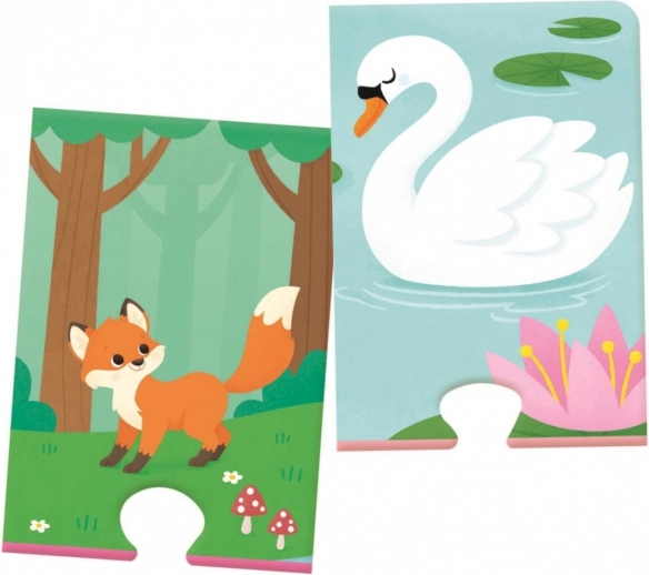 Ovaj set šarenih taktilnih puzzli osmišljen je kako bi potaknuo prirodnu dječju znatiželju i učenje kroz igru. Dijelovi se sastoje od živopisnih figura životinja i odgovarajućih obrisa koje djeca uparuju i slažu u vesele prizore. Zahvaljujući grubljim površinama životinjskih dijelova, mališani vježbaju osjet dodira i otkrivaju različite teksture.