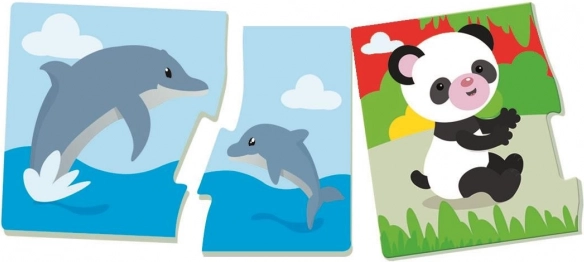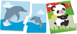 Otkrijte prve puzzle koje djecu uče prepoznavati životinje i njihove mladunce na zabavan način. Veliki, čvrsti dijelovi dizajnirani su za male dječje ruke, a zahvaljujući oblikovanim izrezima omogućuju laku samoprovjeru – dijete samo prepoznaje pripadaju li dijelovi jedan drugome.
