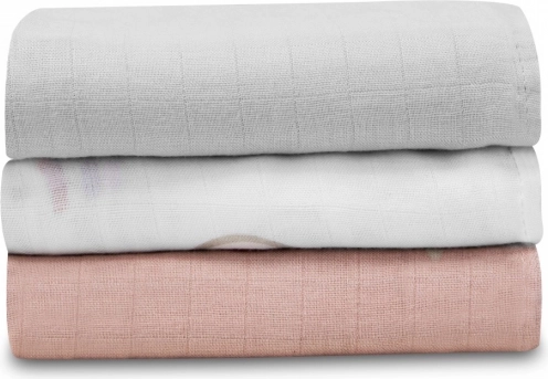 Tri koloristički usklađene pelene dimenzije 70 × 70 cm poslužit će za povijanje, pri dojenju, hranjenju i kao podloga za presvlačenje – kod kuće i na putu.