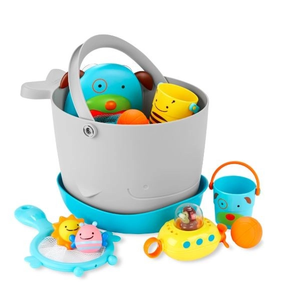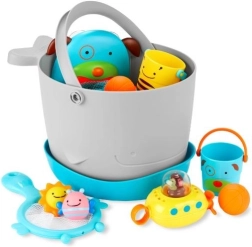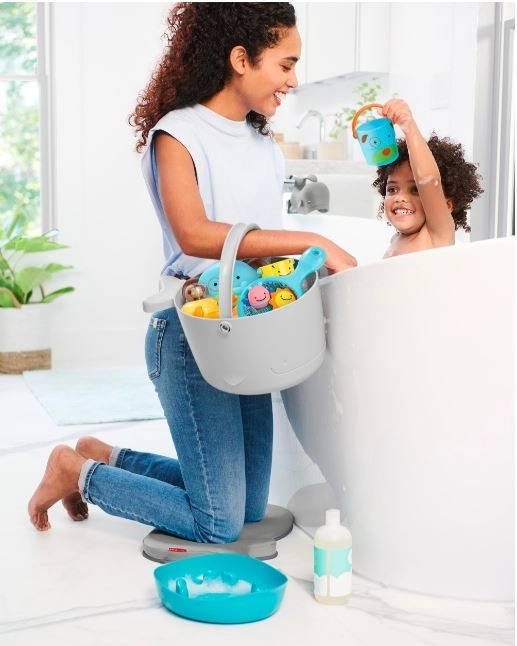 Pretvorite kupanje u zabavan ritual uz SKIP HOP set s 10 dijelova za djecu od 9 mjeseci. Praktična kante s odvojenom ocjeđivačkom bazom olakšava sušenje, dok životinjske igračke, mrežica za lov, podmornica Majmunčić i koš za kupanje razvijaju motoriku i maštu. Veliki odvodni otvori i jednostavno održavanje osiguravaju higijenu i red u kupaonici.