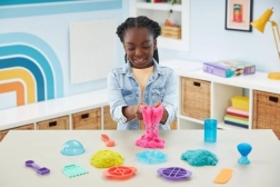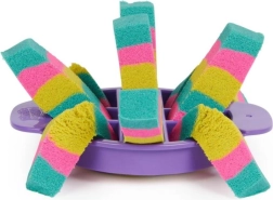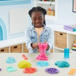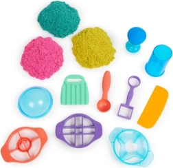 Ultimativni set za ljubitelje kinetičkog pijeska donosi 900 g pijeska u tri boje (ružičasta, žuta, tirkizna) i 10 praktičnih alata uključujući 3 ekskluzivna rezača za impresivne efekte. Djeca mogu pijesak miješati, slagati, rezati, pritiskati i oblikovati prema mašti – igra je nenavikljiva, umirujuća i sigurna.