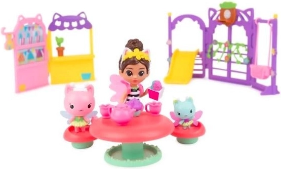 Set za vrtnu zabavu: Uživaj u sjajnim dodacima za vrtnu zabavu u stilu Mačje kuće, kao što su ljuljačka i tobogan, stalak s grickalicama i kokicama, set za čaj i kolačiće, gljivasti stol sa stolicama i još mnogo toga!