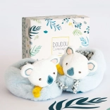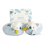 Preslatke plišane cipelice s motivom koale u poklon kutiji idealan su poklon za novorođenčad. Zveckajuće cipelice griju dječje nožice i donose dašak fantazije u odjeću.