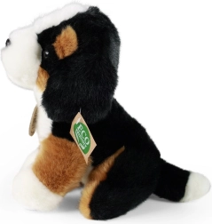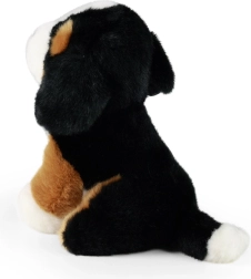 Ovaj plišani pas dizajniran je s detaljima tipičnim za bernskog planinskog psa, s kombinacijom crne, smeđe i bijele boje.