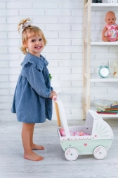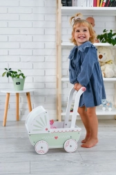 Ovaj drveni dječji kolica za lutke idealna je igračka za djecu koja vole igre uloga i brigu o svojim lutkama. Izrađen od kvalitetnog drva s prekrasnim dizajnom, pruža sigurnu i zabavnu igru.