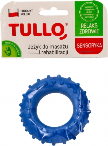 Rehabilitacijski prsten u plavoj boji dizajniran je tako da pruža taktilnu stimulaciju i bolje prianjanje. Idealan za rehabilitaciju, fizikalnu terapiju i opće jačanje ruku. Zahvaljujući ergonomskom dizajnu savršeno se prilagođava obliku ruke, a njegova tekstura s malim ispupčenjima pruža dodatni „grip“.